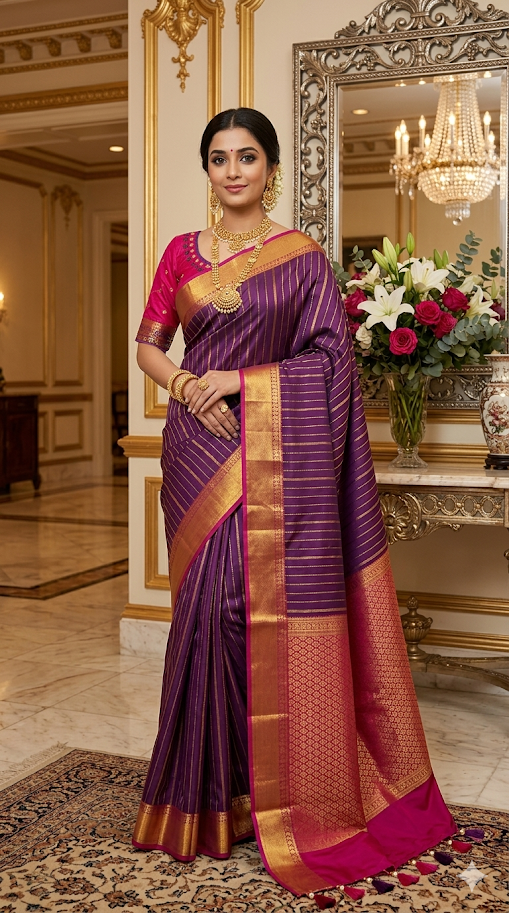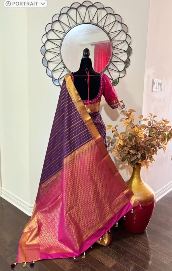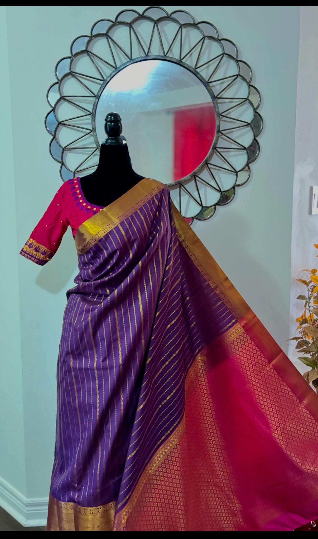 💥kanchipuram silk saree with rare color combinations with ready to wear work blouse that first to 34 to 46