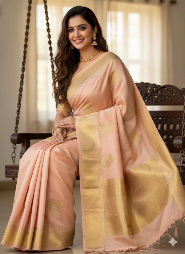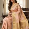 Pink Gold Semi Silk Kanjeevaram Saree with traditional gold motifs and zari work