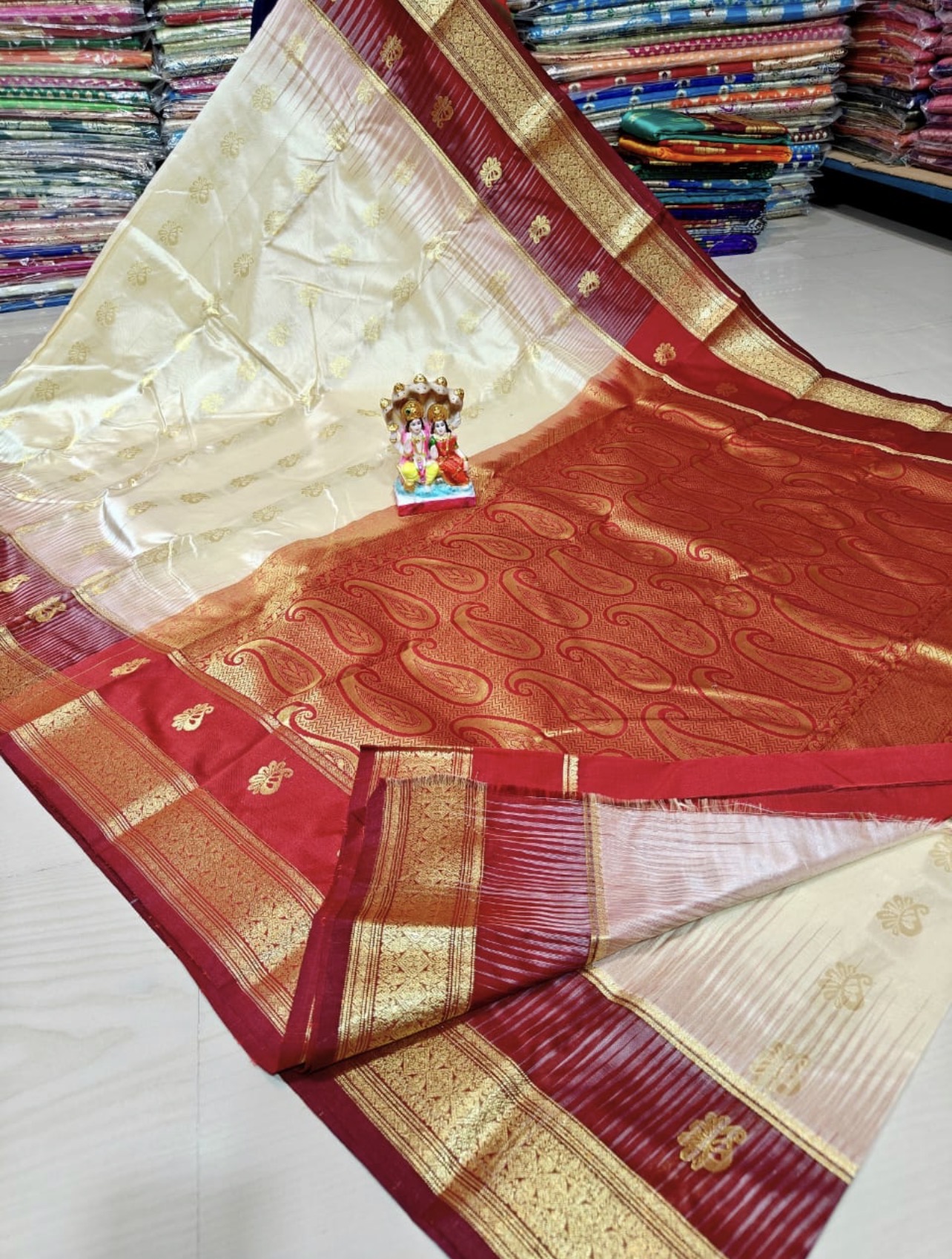 Beautiful traditional kanjeevarum silk available in red and white and yellow and red combinations