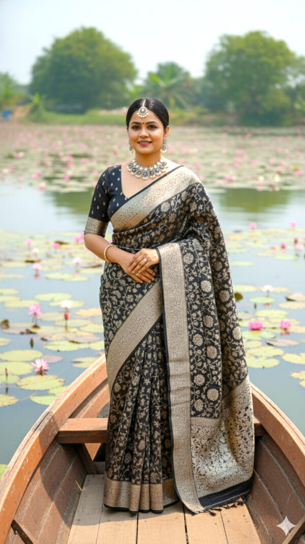 black blouse, this saree is an ideal choice for occasions that call for grace