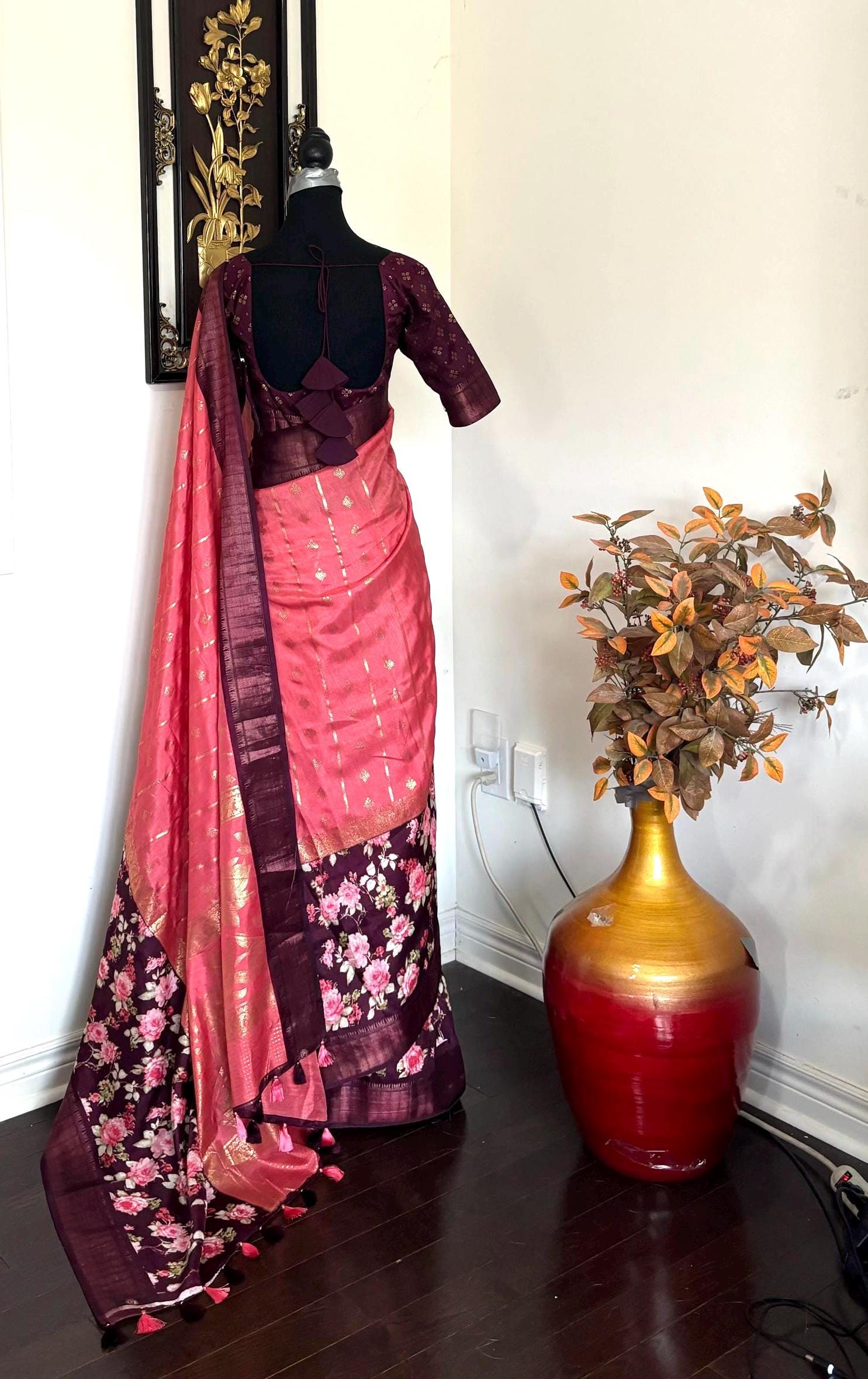 saree is ready with fall pico and fancy tassels ❤️Saree will be same as pictures instead more prettier than pics