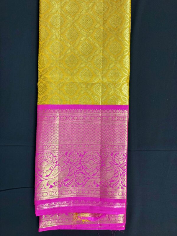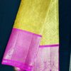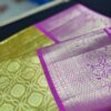 Lime Green Silk Kanjeevaram Purple Pink Border Saree Pure Silk
