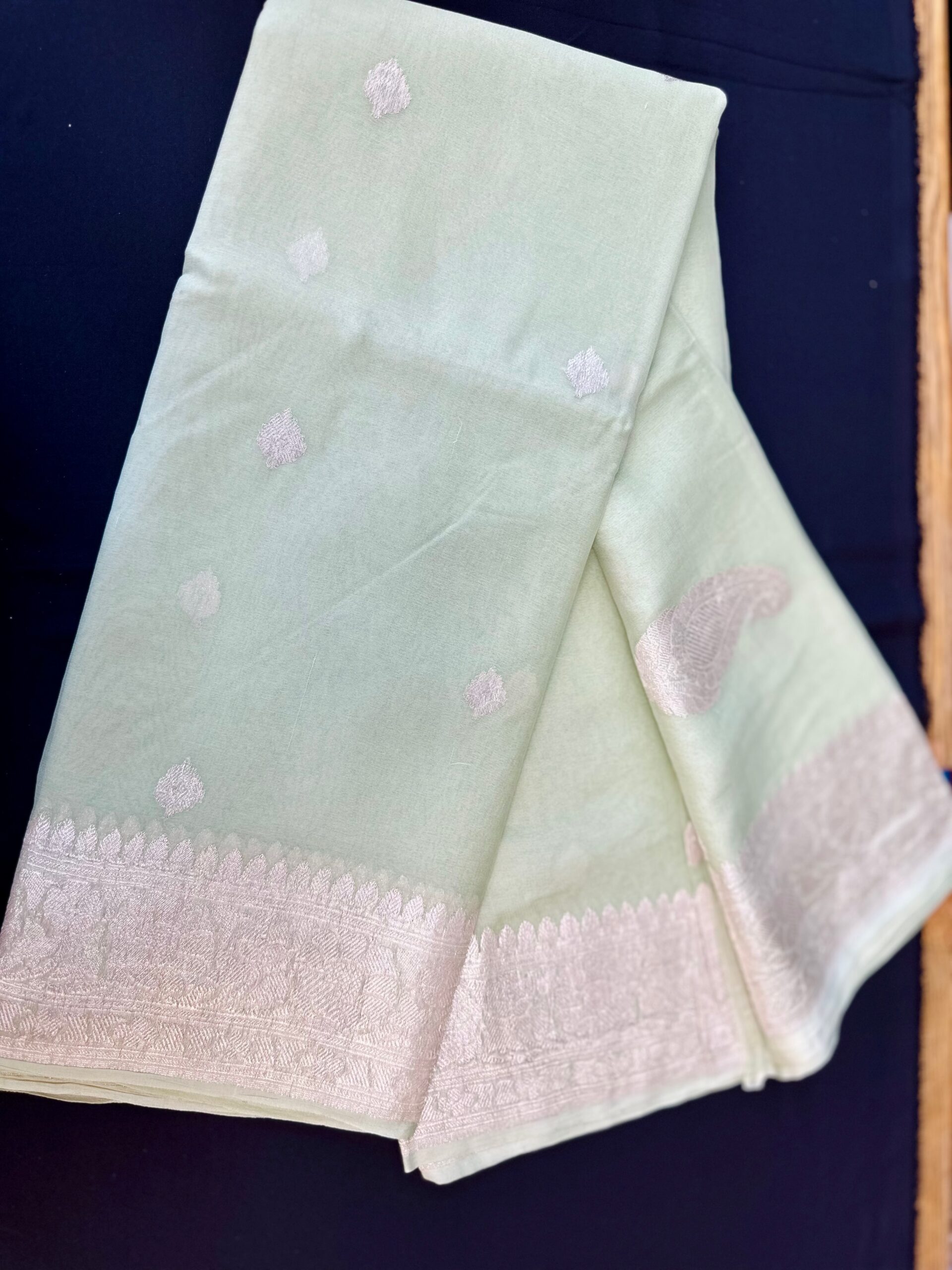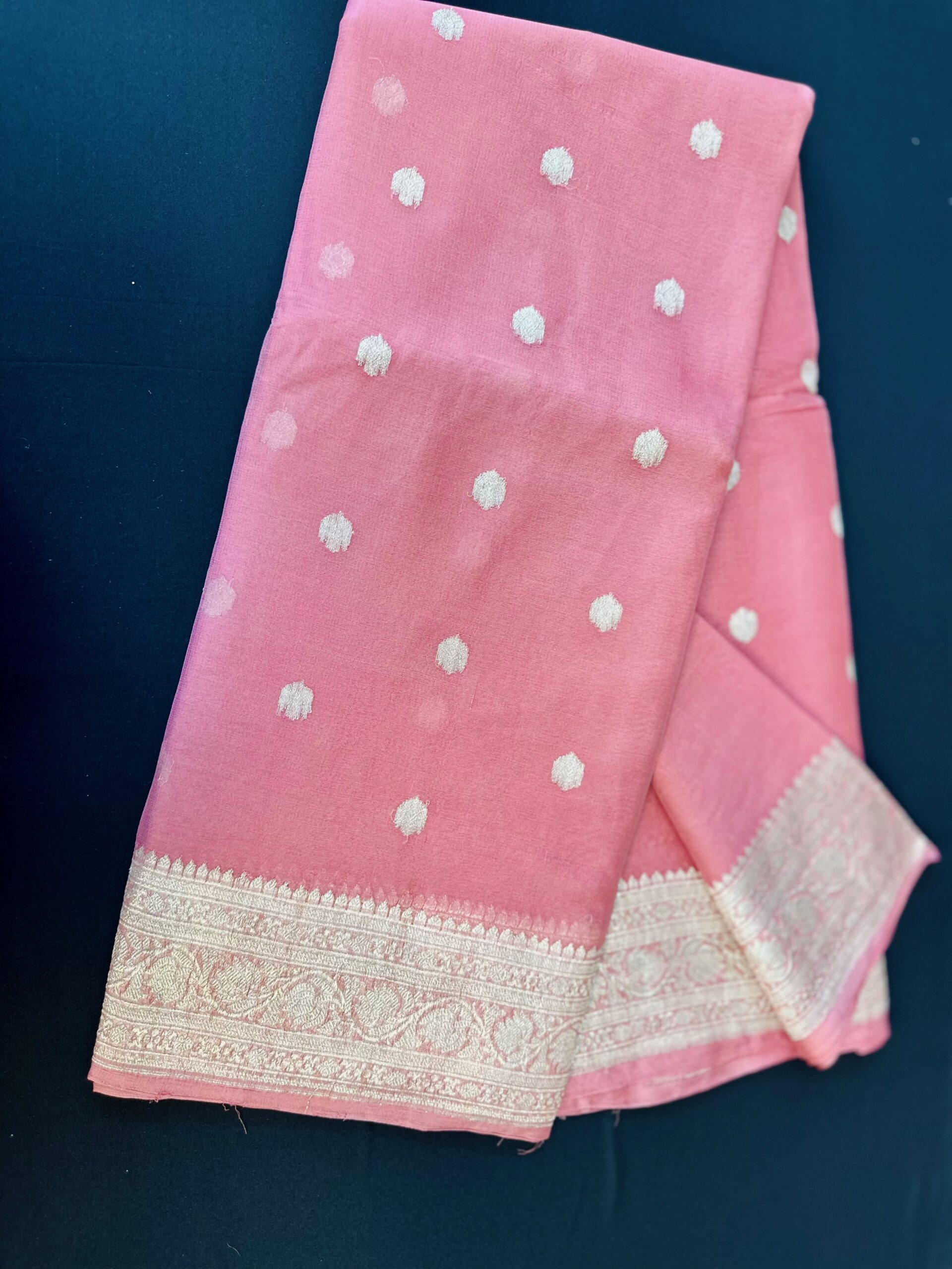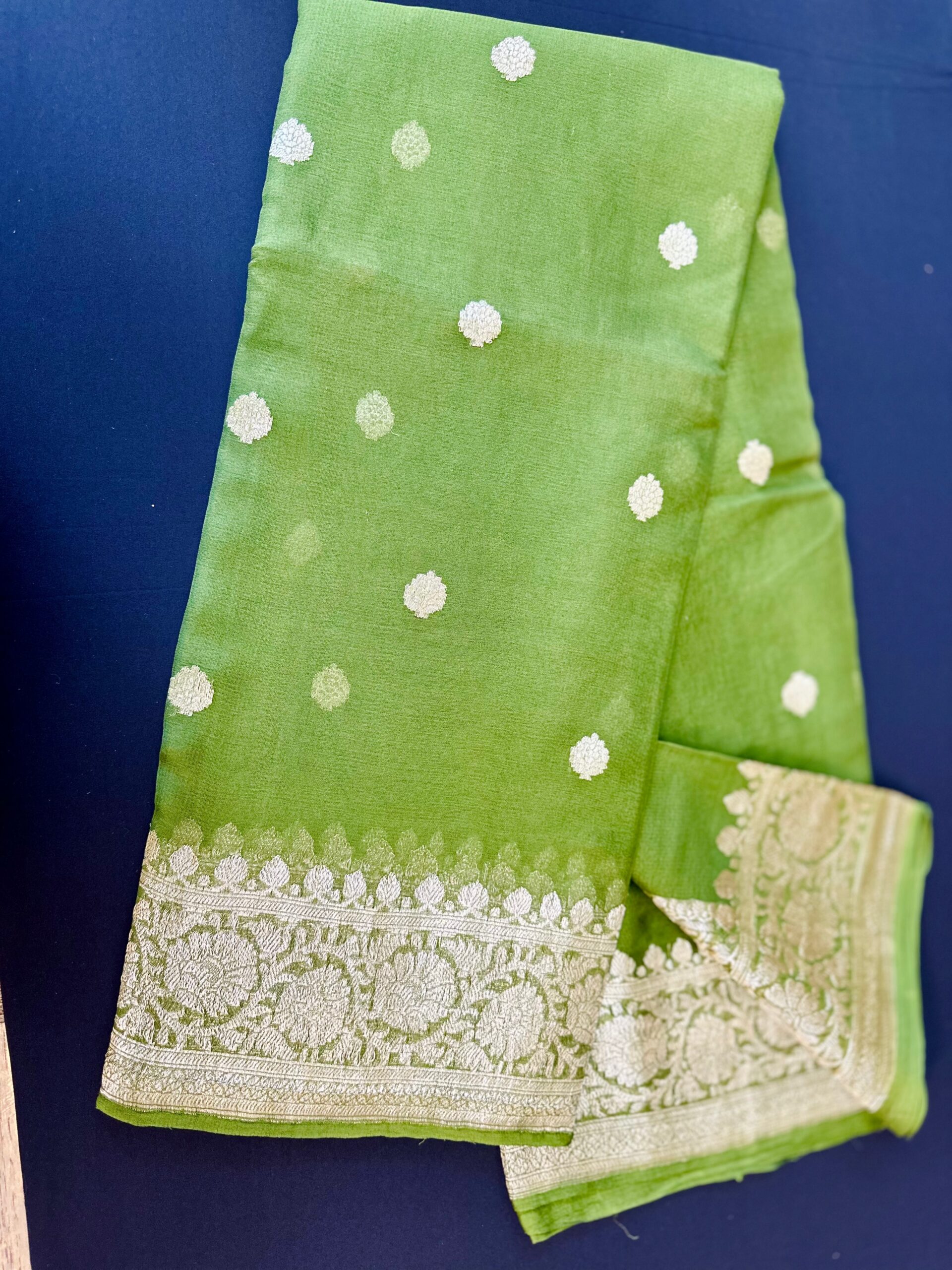 Pure Khaddi Soft Silk Saree and Champagne-Gold Border