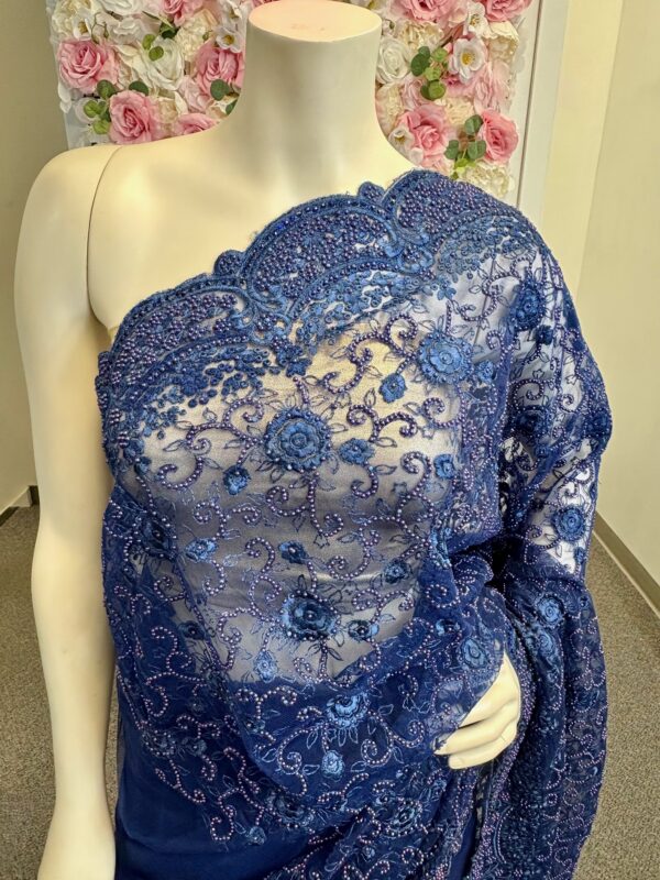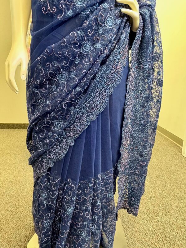 Navy Blue Net Saree with Self Moti Embroidery