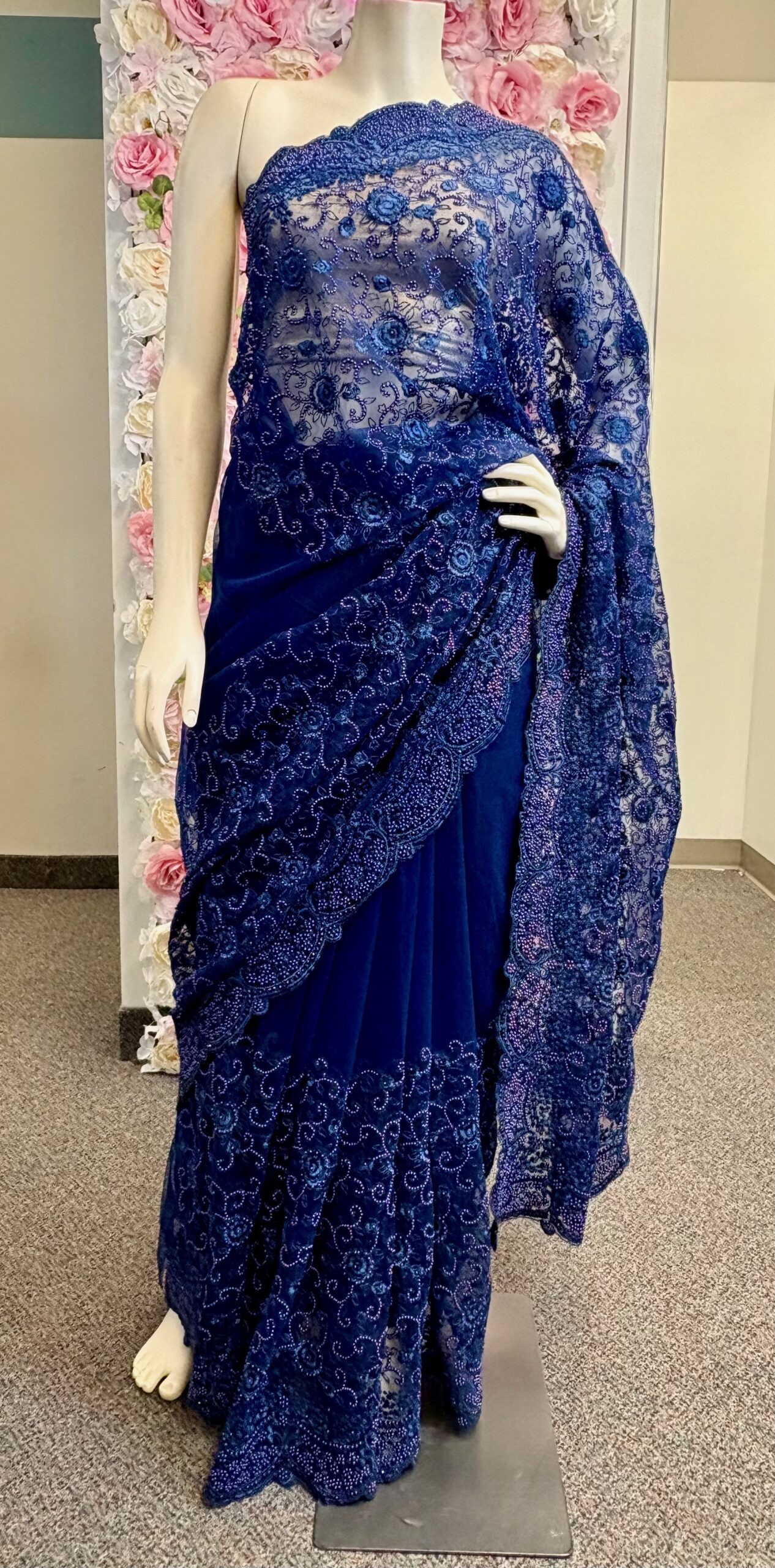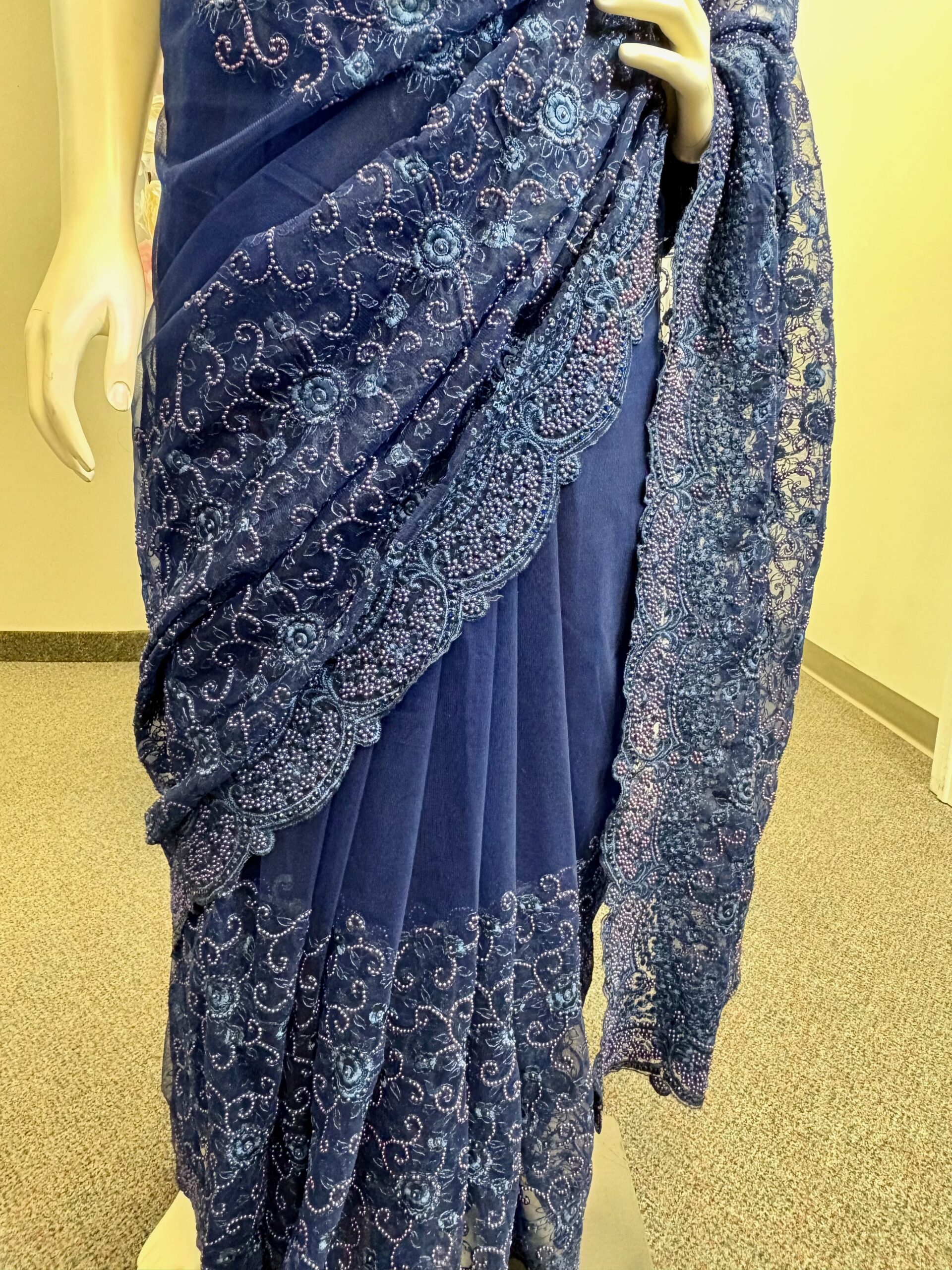 Navy Blue Net Saree with Self Moti Embroidery