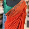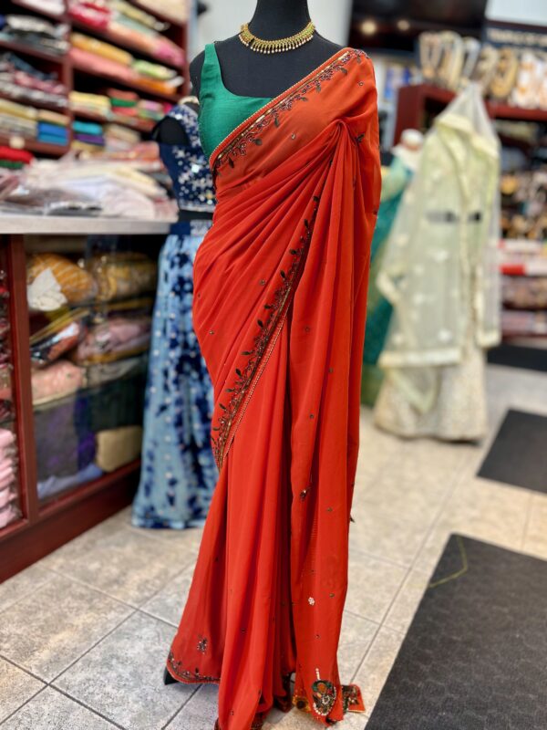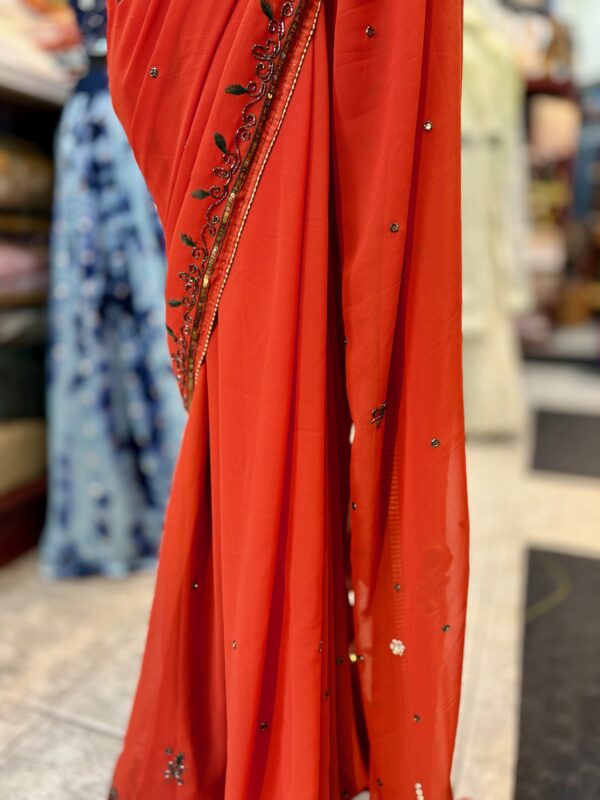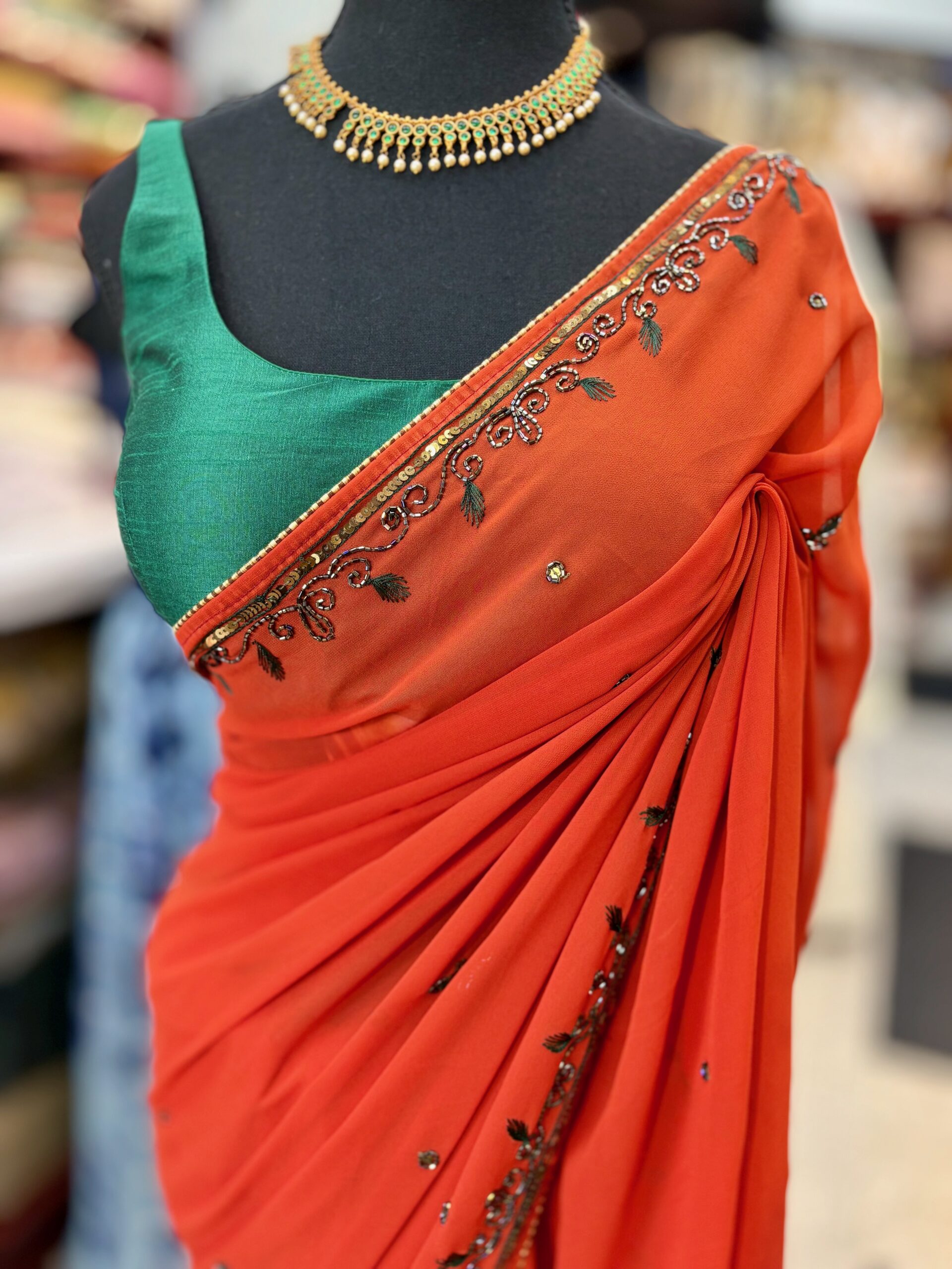 Orange Georgette Party Wear Glamorous Glittery Saree. Designer saree for party with glitters