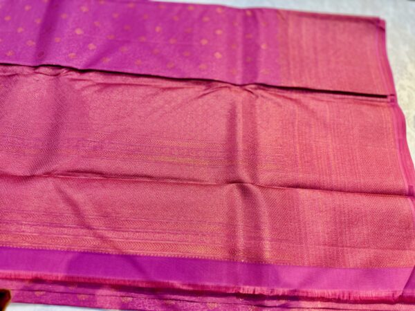 Pink colored Kanjeevaram or Kanjivaram Silk Saree from Kanchipuram with wide border adding to the elegance
