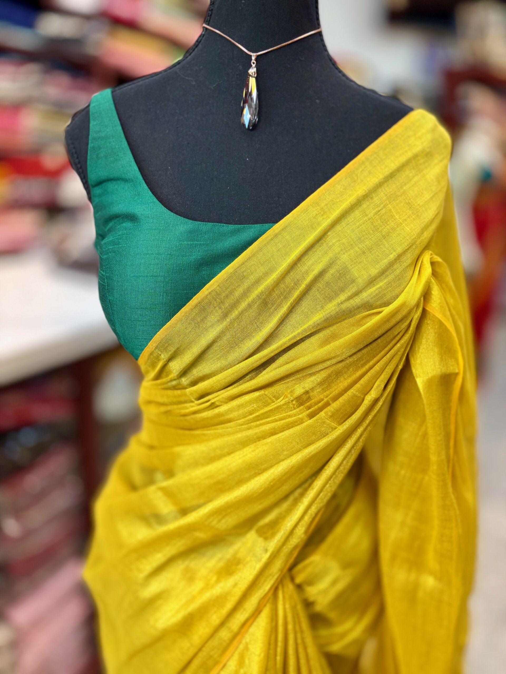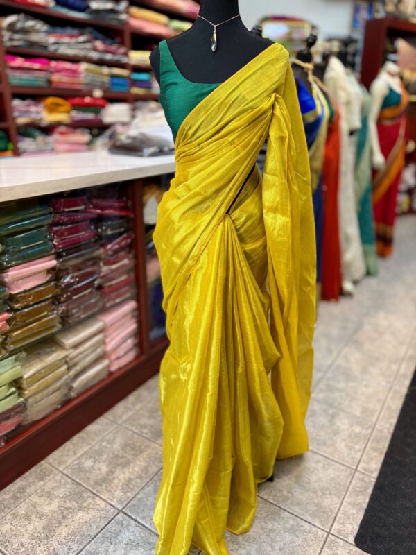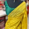 Gorgeous Plain Yellow Semi Silk Kanjeevaram style Saree