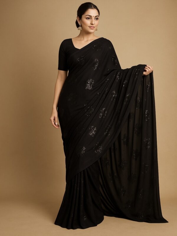 Black can never go wrong . Choose this beautiful pure crepe sequence work designer piece to stand out of the crowd.