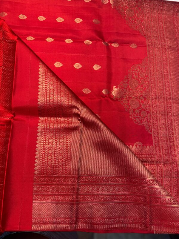 This exquisite pure Red Kanjipuram saree is a timeless masterpiece woven from the finest silk threads in the temple town of Kanchipuram, Tamil Nadu. Known for its luxurious texture and durability, this saree showcases intricate zari work and traditional motifs inspired by South Indian culture. The contrasting border and pallu add a regal touch, making it ideal for weddings, celebrations, and special occasions. A symbol of elegance and heritage, this saree is a must-have in every traditional wardrobe.