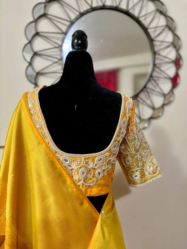 Blouse is ready with hand embroidery maggam work with kundan beeds saree exactly will come like picture promising more beautiful than pictures and blouse more beautiful than picture