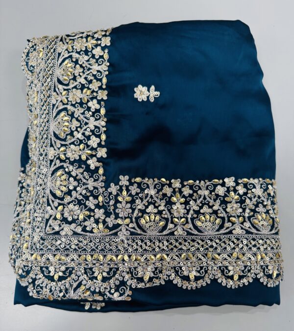 Includes an unstitched blouse piece in the same luxurious satin silk, allowing for tailored personalization