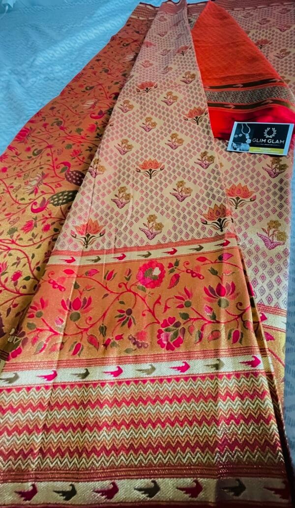 All over zari work, Tanchoi is one of the famous form of weaving silk to make it rich and elegant