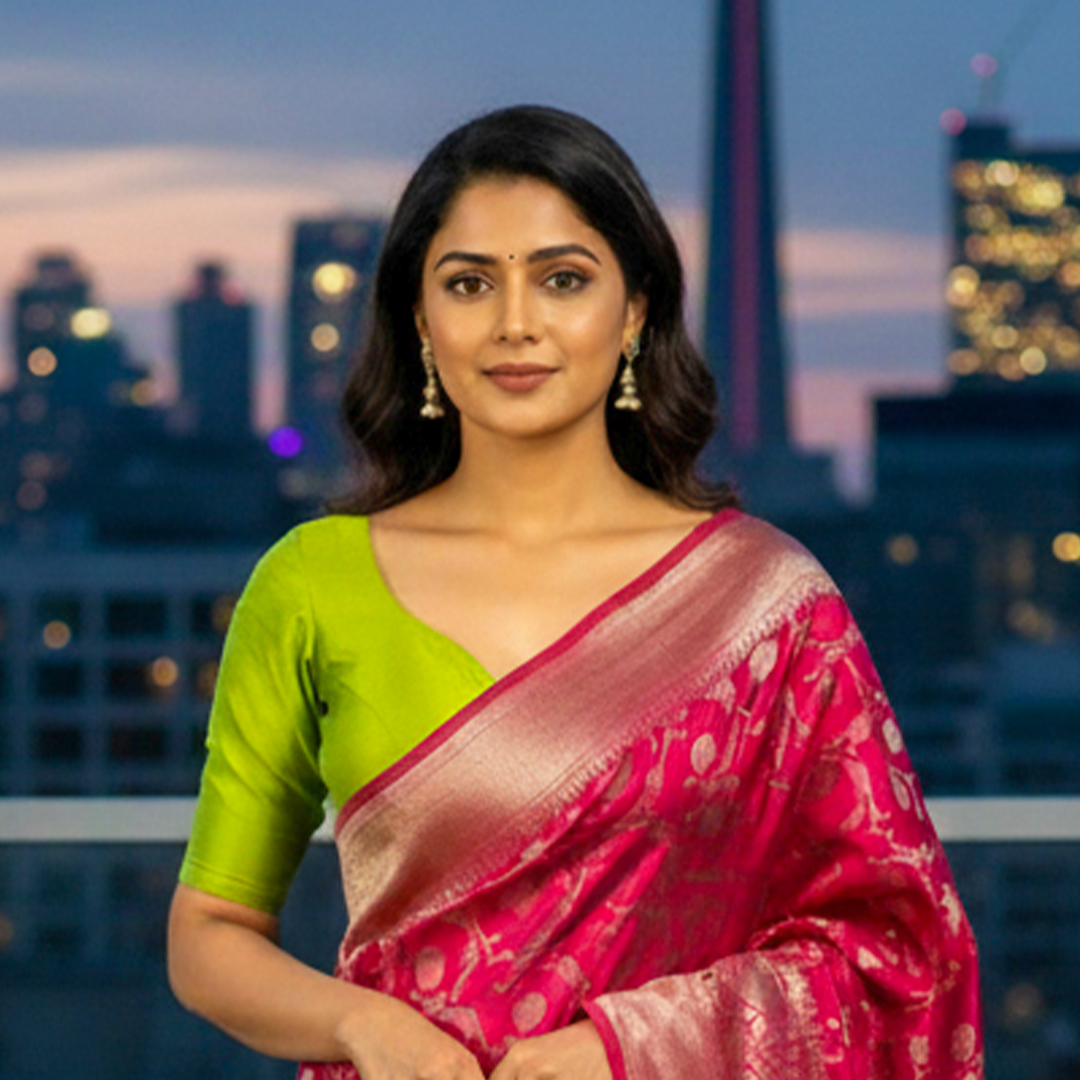 vibrant Rani Pink (Deep Magenta) with brilliant Gold Zari work.