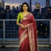 attention and exude pure royalty in our Crimson Empress Banarasi Saree.