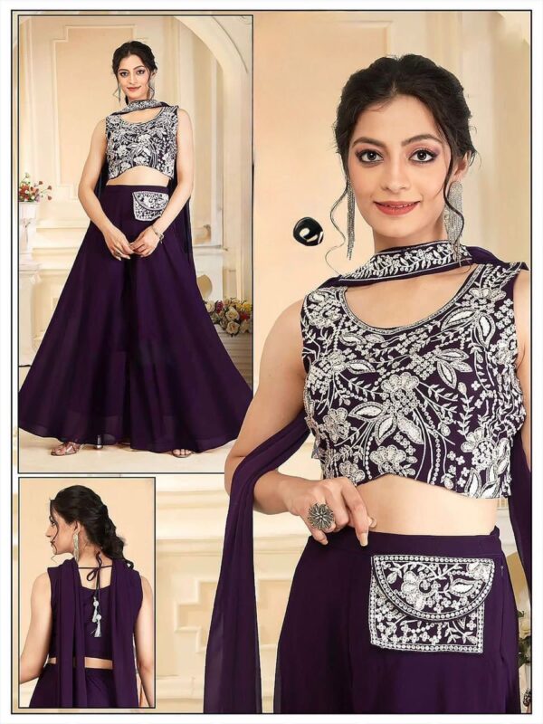 Royal Purple Embroidered Sharara Set with Waist Bag 💜