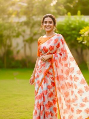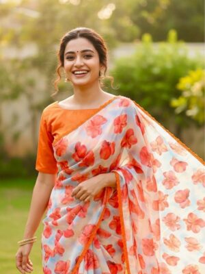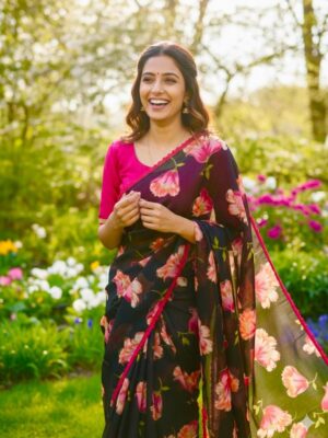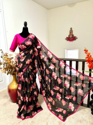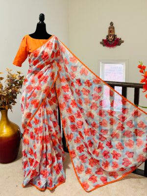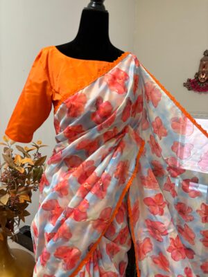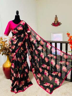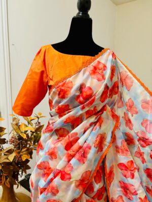 Fabric floral georgetteSaree w...
