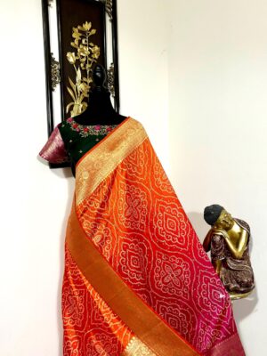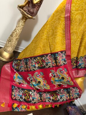 Chanderi ikkat border zari...