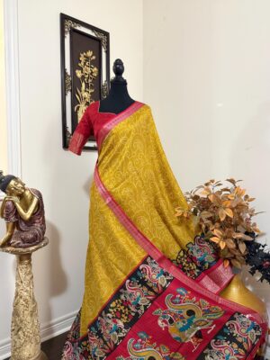 Aqua & Red Gadwal semi Si...