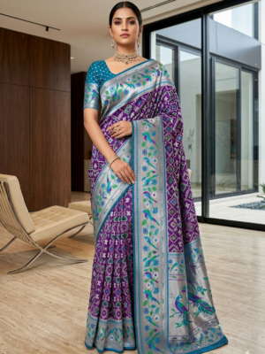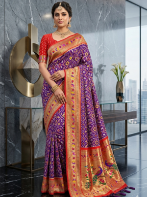 Purple Patola Paithani Silk Sa...