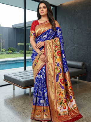 Royal Blue Floral Zari Border ...