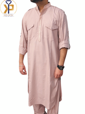 Peach Kurta Pyjama Set With Designer Peach Jacket (Koti) and Pocket Square