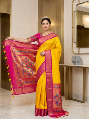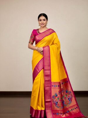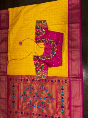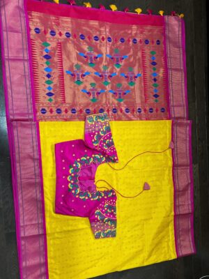 Yellow Paithani pythani pure silk saree with ready to wear beautiful work blouse fits up to 32 to 46
