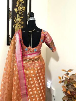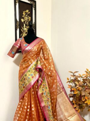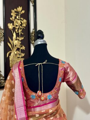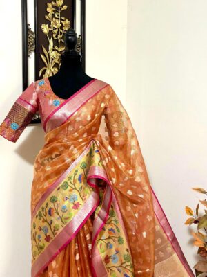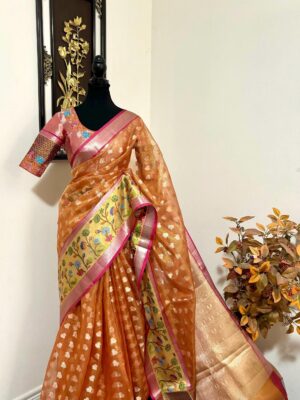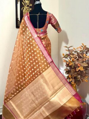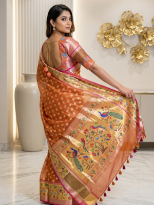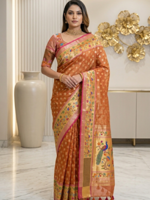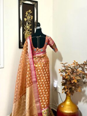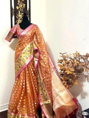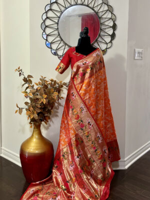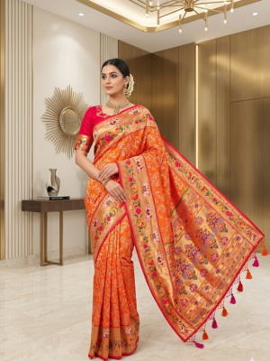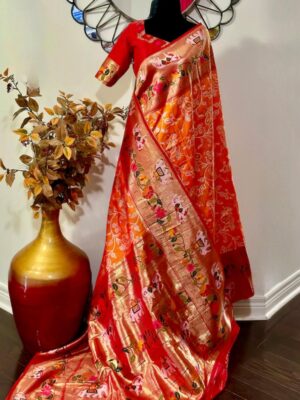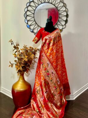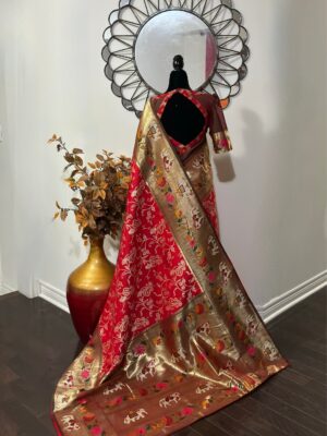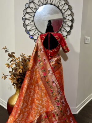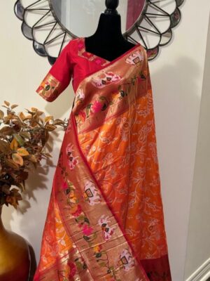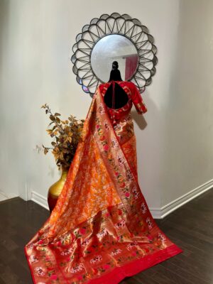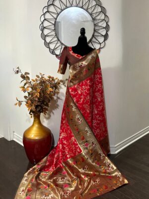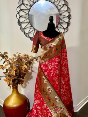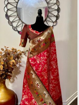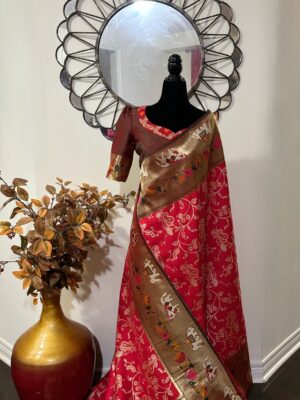 Black & Coral Gadwal semi Silk Saree with Rich Zari Border
