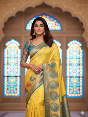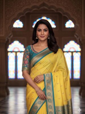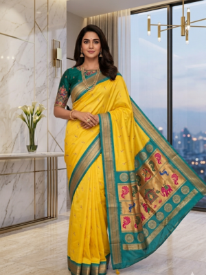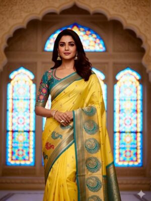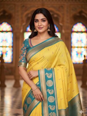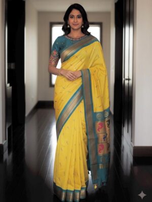 Midnigh blue & Aqua Gadwal semi Silk Saree with Rich Zari Border