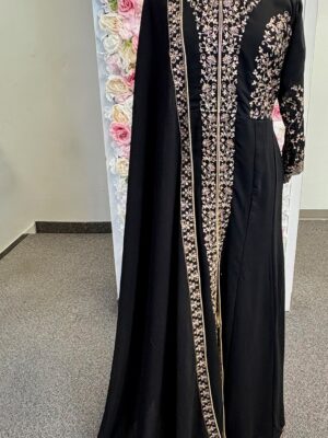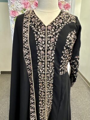 Black Dress – Gown with Gold Embroidery & Dupatta