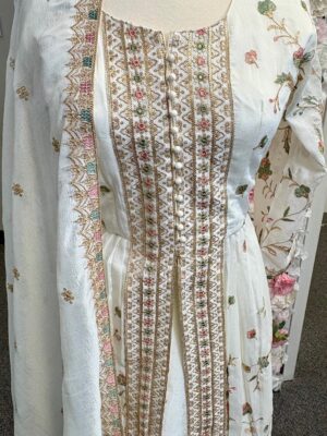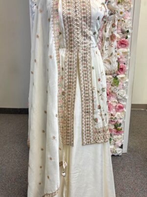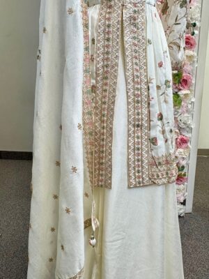 3-Piece White Palazzo Set with Multicolor Embroidery