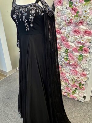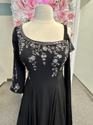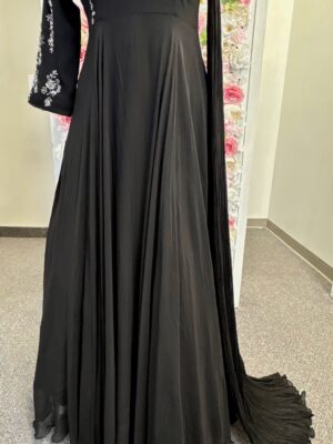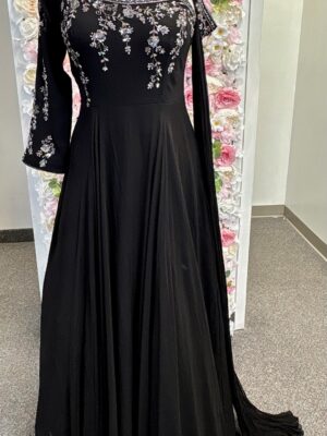 Black Gown Dress with Silver Embroidery & Stylish Sleeves