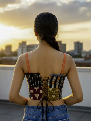 Katha Handcrafted Patchwork Corset with Lace-Up Back