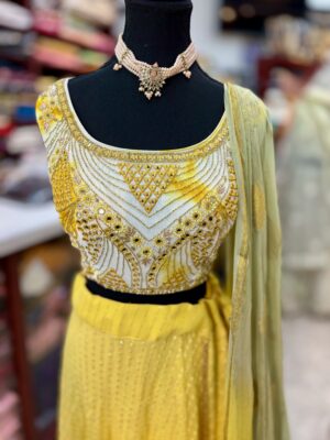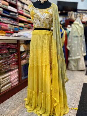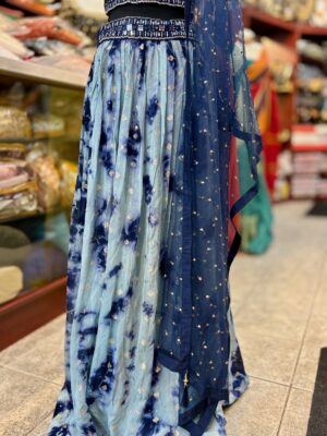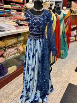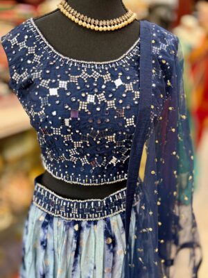 Navy Blue Sky Blue Sea Glittery Embroidered Lehenga