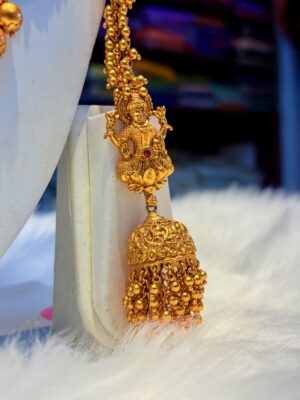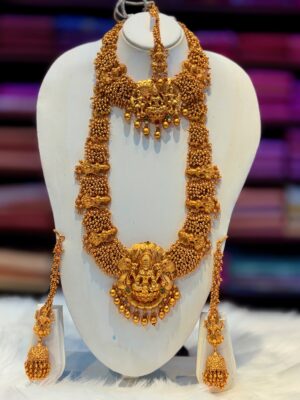 Gold Lakshmi Necklace Choker Earrings Maang Tikka Set