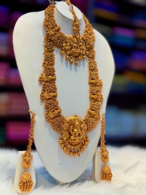 Gold Lakshmi Chain Necklace Earrings Jewelry Set