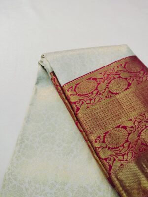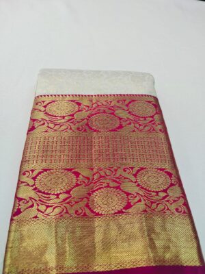 Ivory Cream Color Turning Border Kanjeevaram Silk Saree with Gold Zari Pallu
