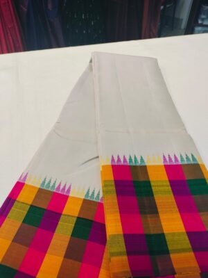 Pure Kanjeevaram Silk Ivory Cream colored saree with checkered border