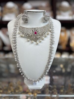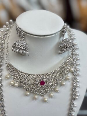 Silver White Kundan Pearl Necklace...